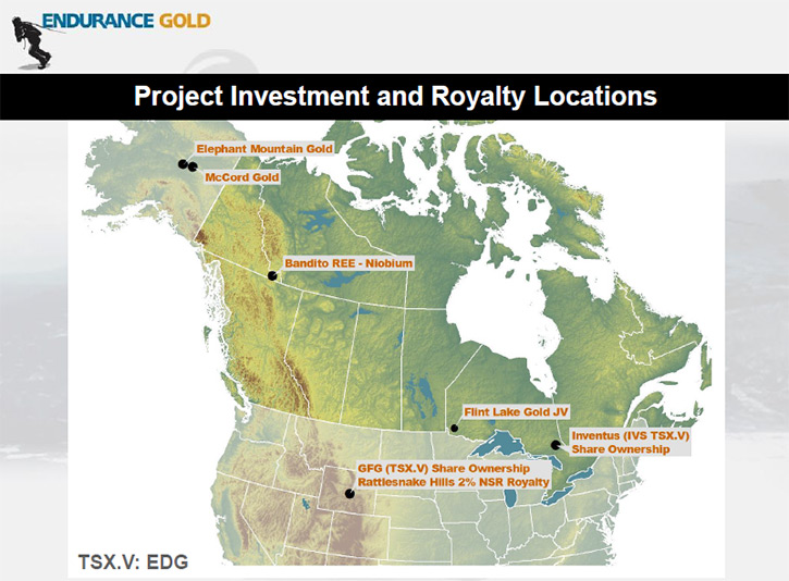 Endurance also owns several other exploration projects. For instance, we control a 100%-owned niobium rare earth project in