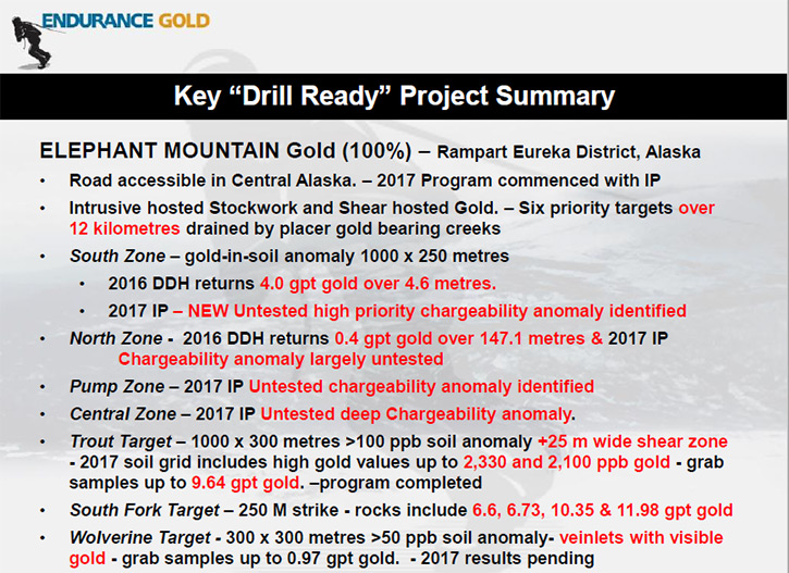 Another example is our Elephant Mountain Project in Alaska which is our current exploration focus. It consists of three