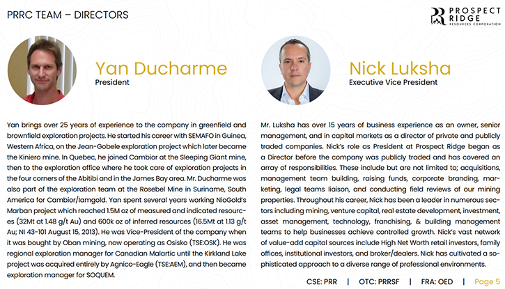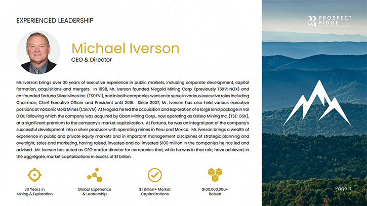 This is Dr. Allen Alper, Editor-in-Chief of Metals News, talking with Nick Luksha, who is Executive VP of Prospect Ridge Resources Corporation. Nick, could you give our readers/investors an overview of your Company and what differentiates it from others?