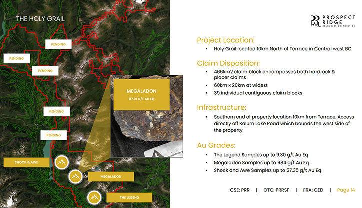 There are also a few other zones on the Knauss Creek property that are showing high grades of gold in grams per ton. We have a whole bunch more results pending, which we are expecting to also be producing high-grades of gold in grams per ton. Another thing to understand, about Knauss Creek, is that it's also, despite being greatly wilderness, very highly accessible, just like the Holy Grail, with logging roads and easy access in and out, with a helicopter.