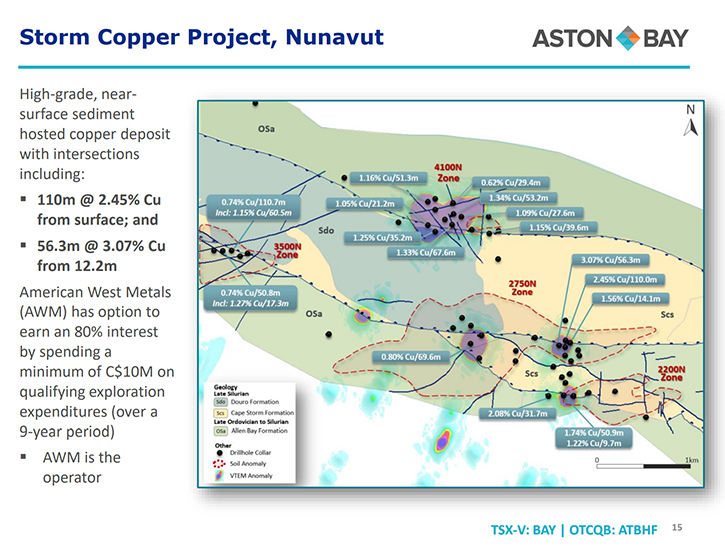 Last summer, very shortly after signing the agreement with us, they completed an approximately $1 million ground EM program at Storm that delineated some exciting new targets and what we think are potential expansions to the known mineralization. For the readers, who may not know about Storm, we're talking about some very high grade, at surface copper: 110 meters of almost 2.5% copper, right from the surface, and 56 meters or so of over 3% copper, from the very near surface.